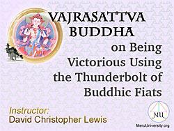 This Meru University class affords us an opportunity to bask in the light of Vajrasattva’s indomitable spirit within which he manifests the adamantine-diamond nature of victory. Using his sacred thunderbolt vajra, he clears us and the Earth with the lightning-love of Buddhic compassion and teaches us how to free sentient beings to rise into their own Buddha Nature. Fiery fiats may be expressed throughout this class to free us from illusion and to goad us to new heights of divine awareness!
